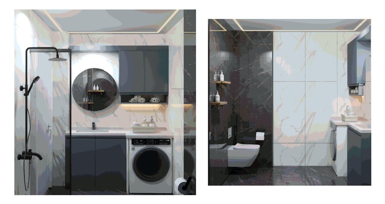 Projede 1. sınıf işçilik ve kaliteli malzeme kullanımı öne çıkmaktadır. 60x120 Kütahya Seramik banyo kaplamaları, asma klozetler, VarioDoor lake kapılar, derzli parke ve 8 cm süpürgelikler, antrasit Winsa doğramalar ve yerden ısıtma sistemi ile konforlu ve modern bir yaşam hedeflenmiştir.