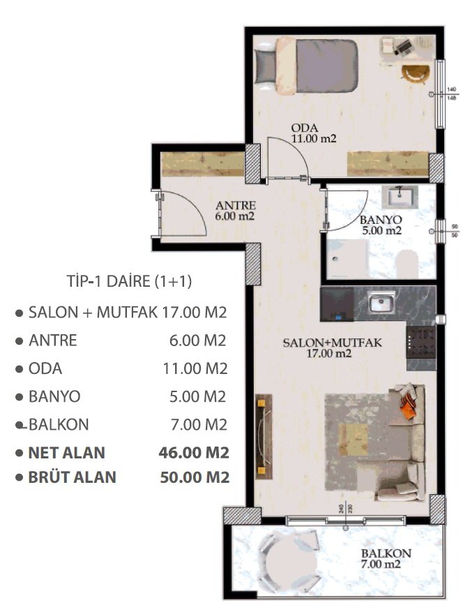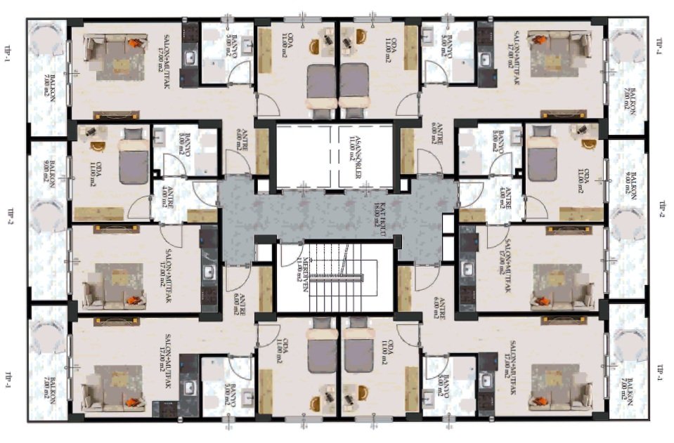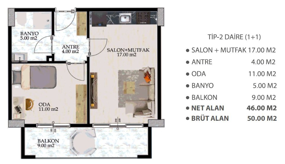 1.866 m² arsa üzerinde geliştirilen proje, 2 bloktan oluşmakta olup toplamda 60 adet 1+1 daire ve 4 ticari üniteden meydana gelmektedir. Yatırım odaklı planlanan daire tipleri, bölgedeki yoğun talebe hitap edecek şekilde tasarlanmıştır.
