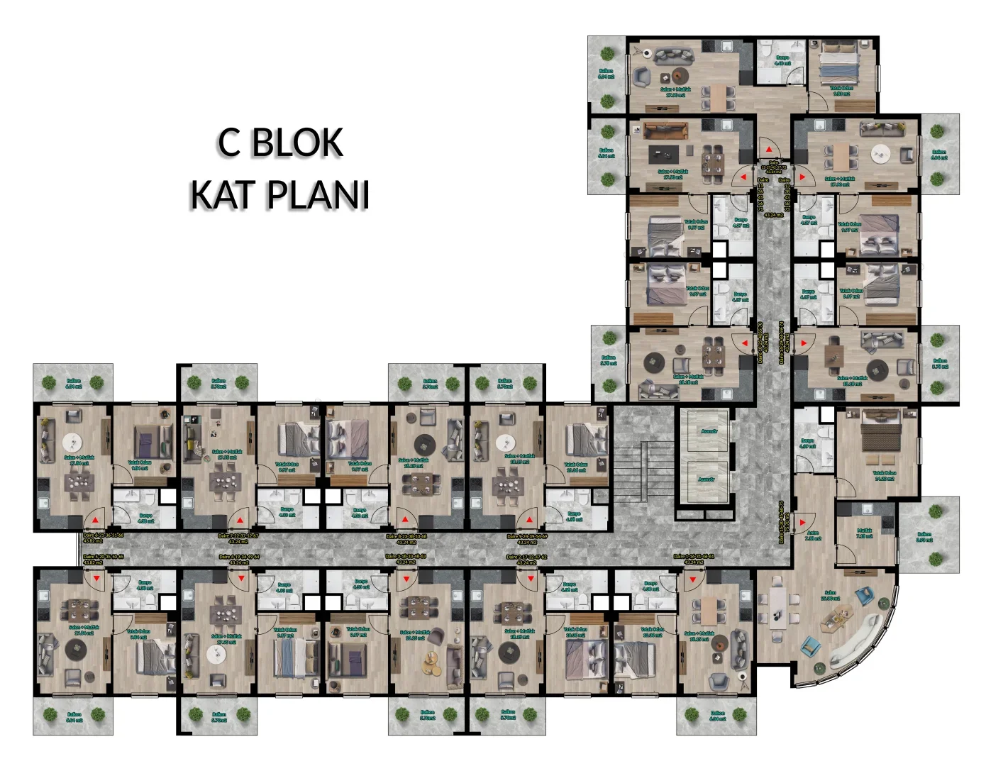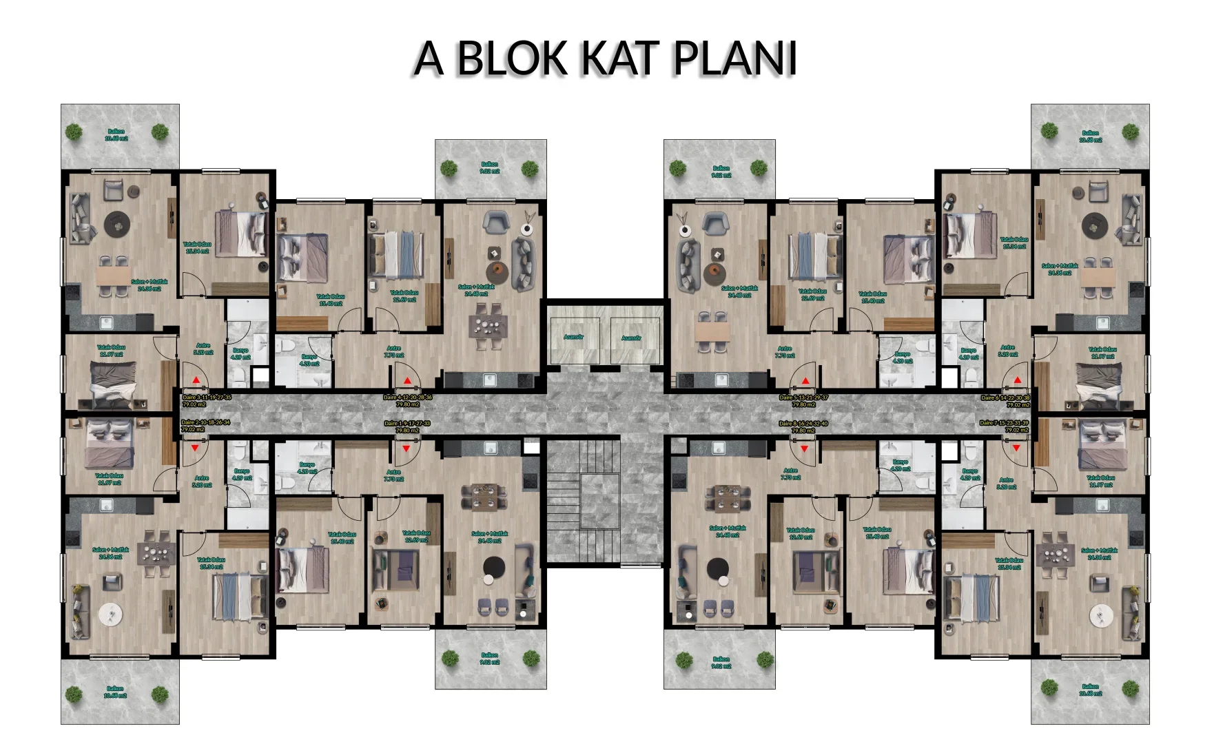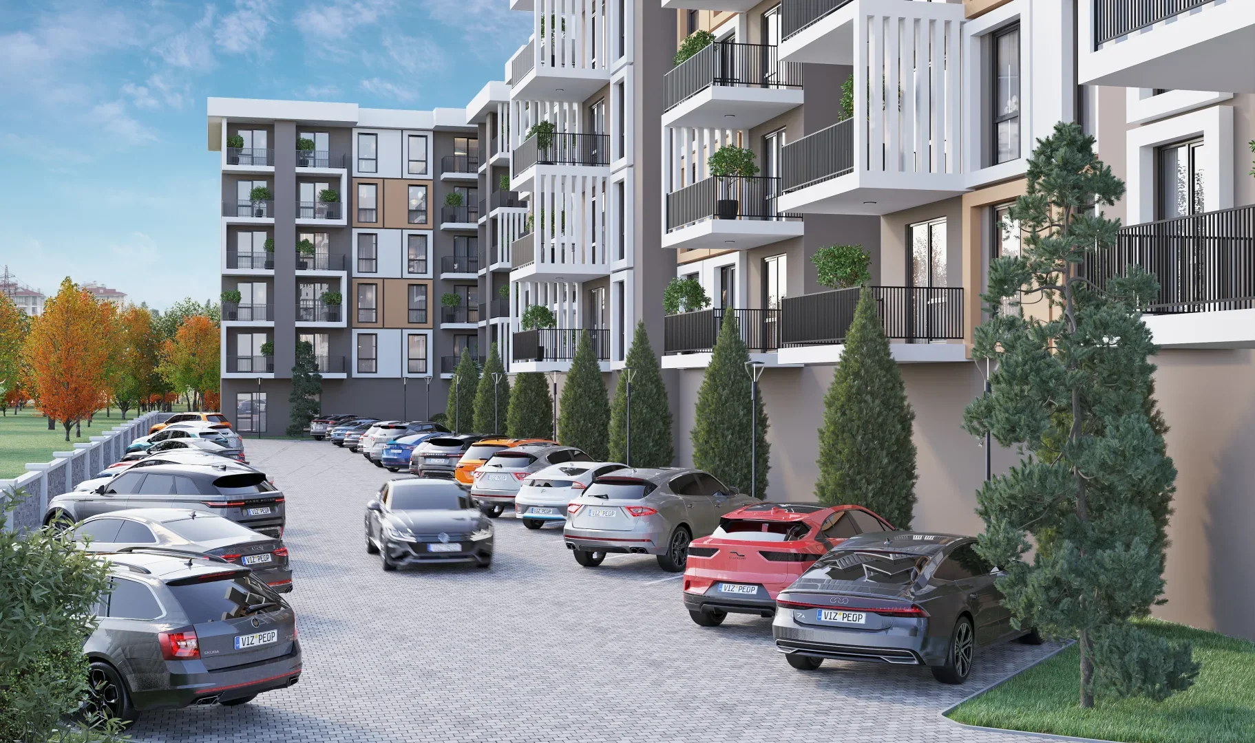 Proje kapsamında 115 adet 1+1 ve 2+1 daire ile 12 adet ticari işyeri bulunmaktadır. İki bloktan oluşan proje toplam 6 katlı olup, açık otopark imkanı sunmaktadır.