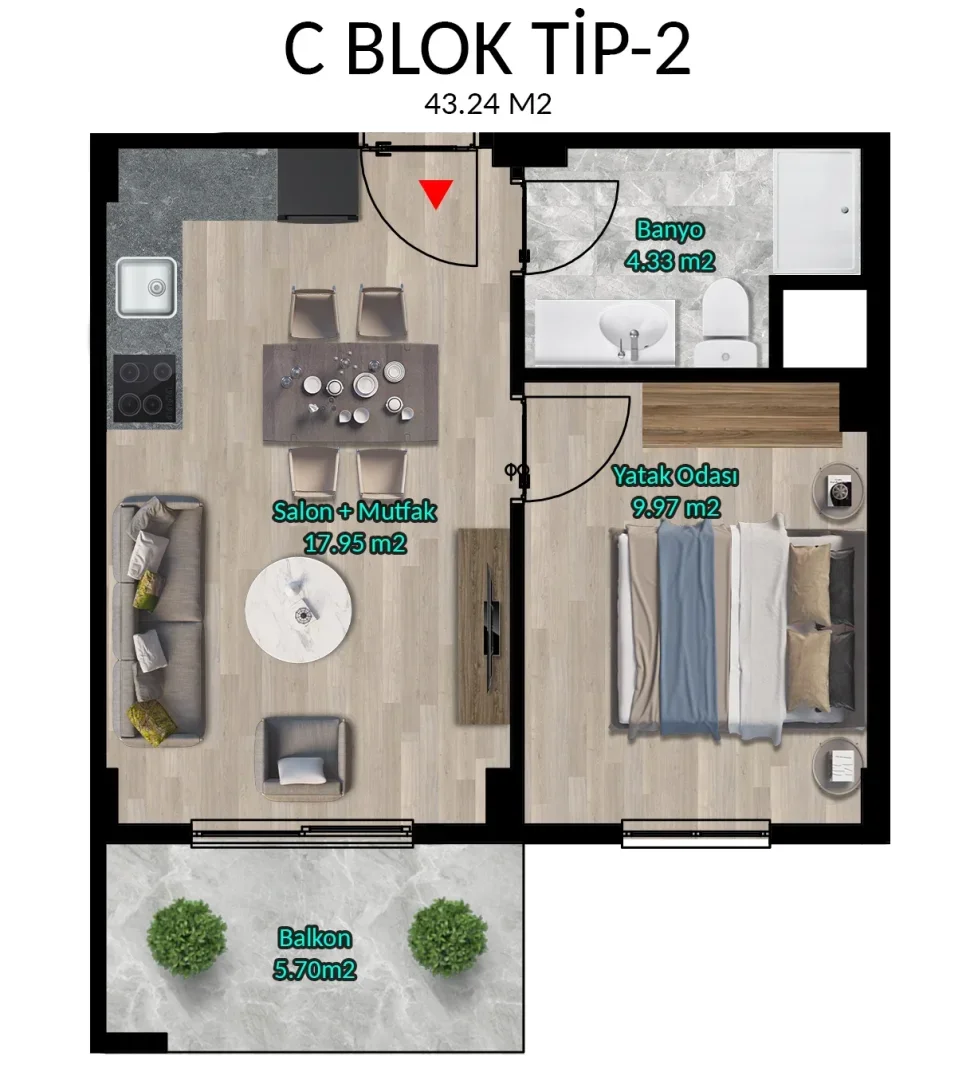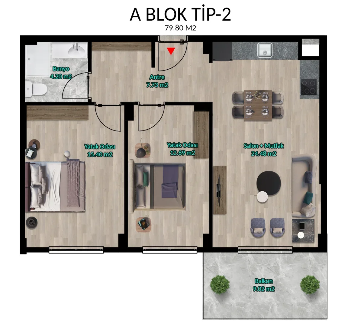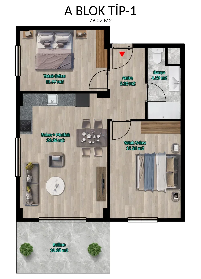 Proje kapsamında 115 adet 1+1 ve 2+1 daire ile 12 adet ticari işyeri bulunmaktadır. İki bloktan oluşan proje toplam 6 katlı olup, açık otopark imkanı sunmaktadır.